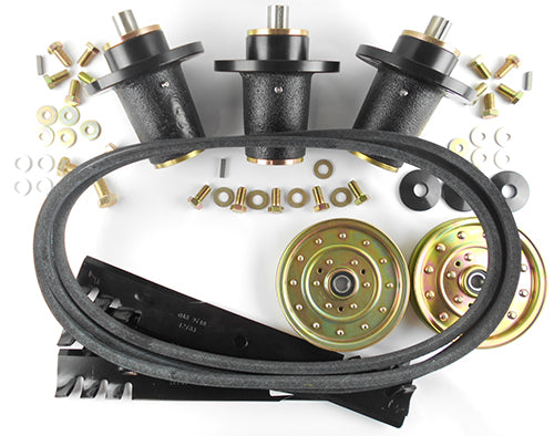 Blade Spindles, Blade Bolt, Blade Washer, Blade Spindle Mounting Hardware, Mower Blades, Idler Pulleys and Deck Belt